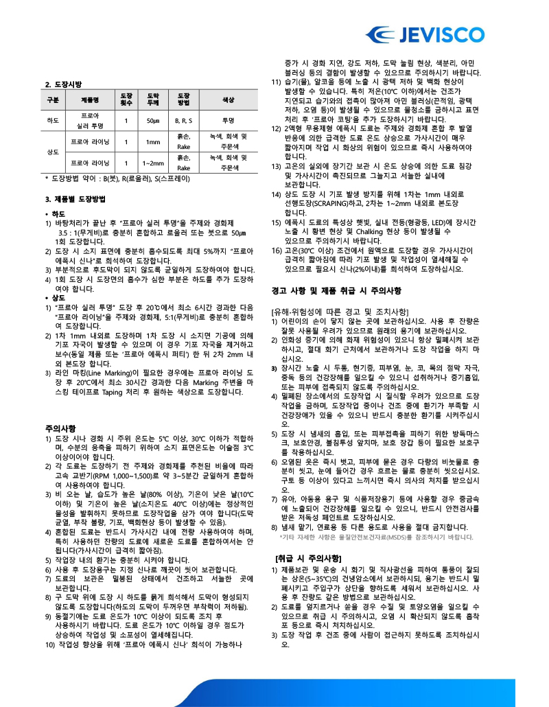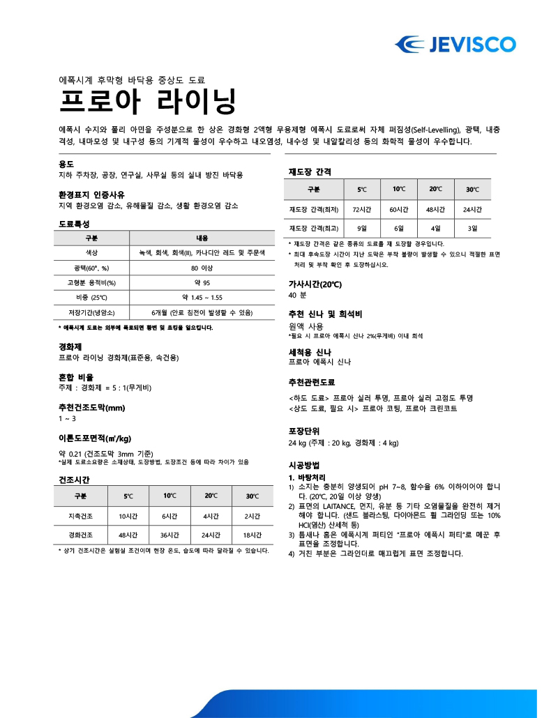 2액형 에폭시계 후막형 바닥용 중상도 도료로 기계적 물성, 화학적 물성 우수