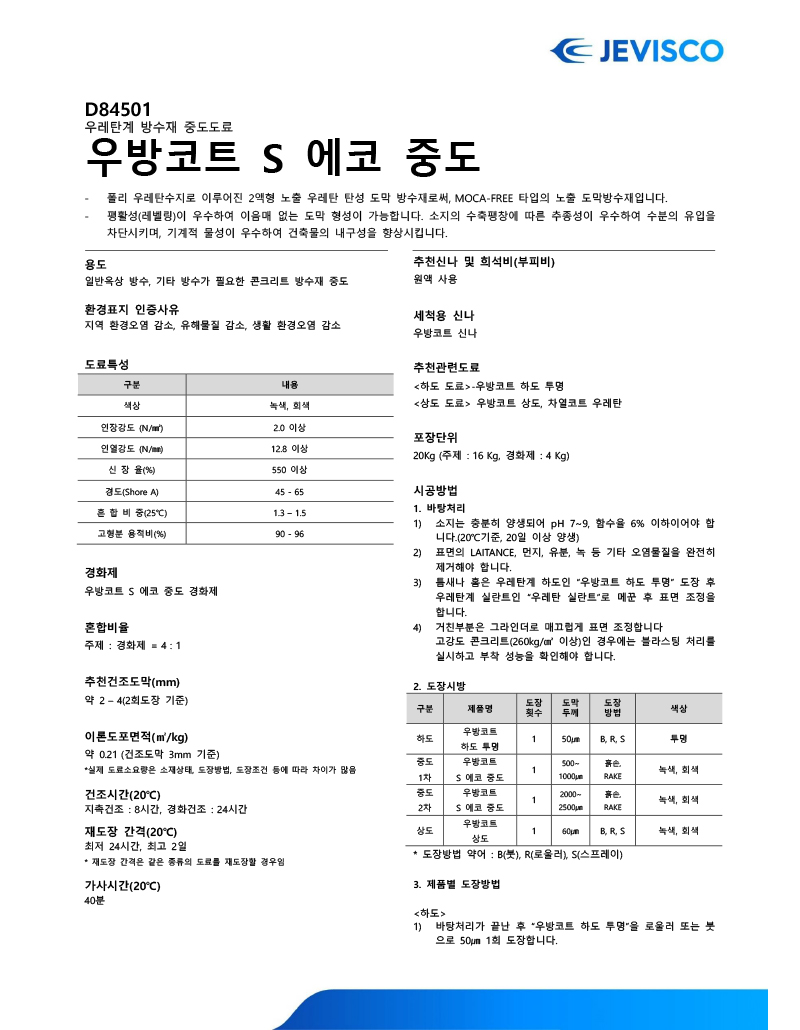우레탄계 방수재 중도도료, 친환경적이며 우수한 방수 성능과 내구성 제공
