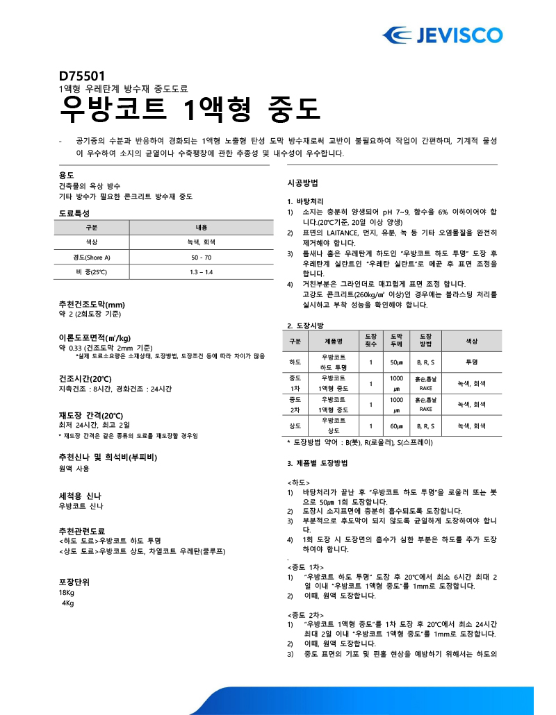 1액형 우레탄계 방수재 중도도료, 간편한 시공과 우수한 방수 성능 제공