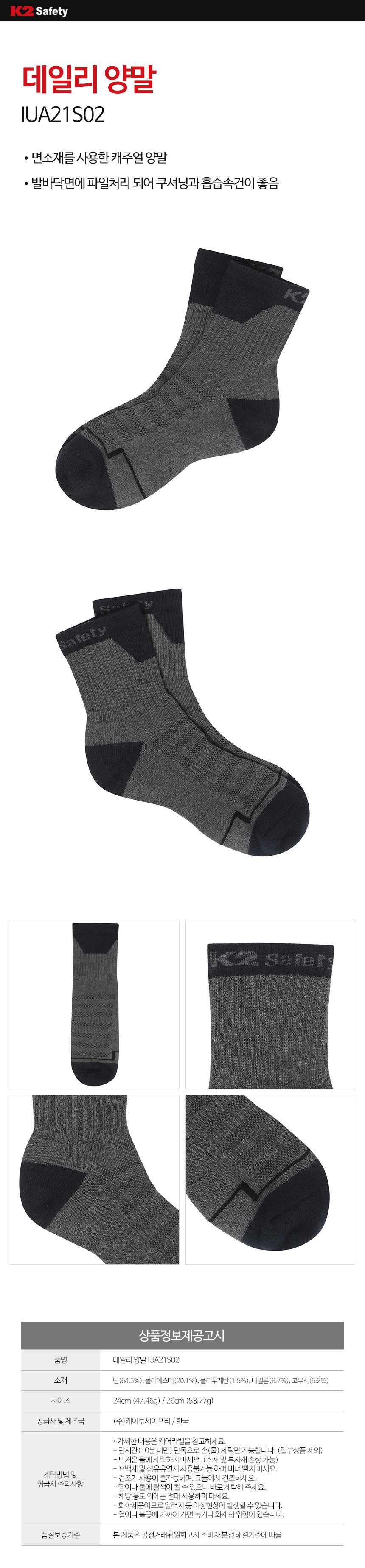 K2 세이프티 데일리 양말 IUA21S02